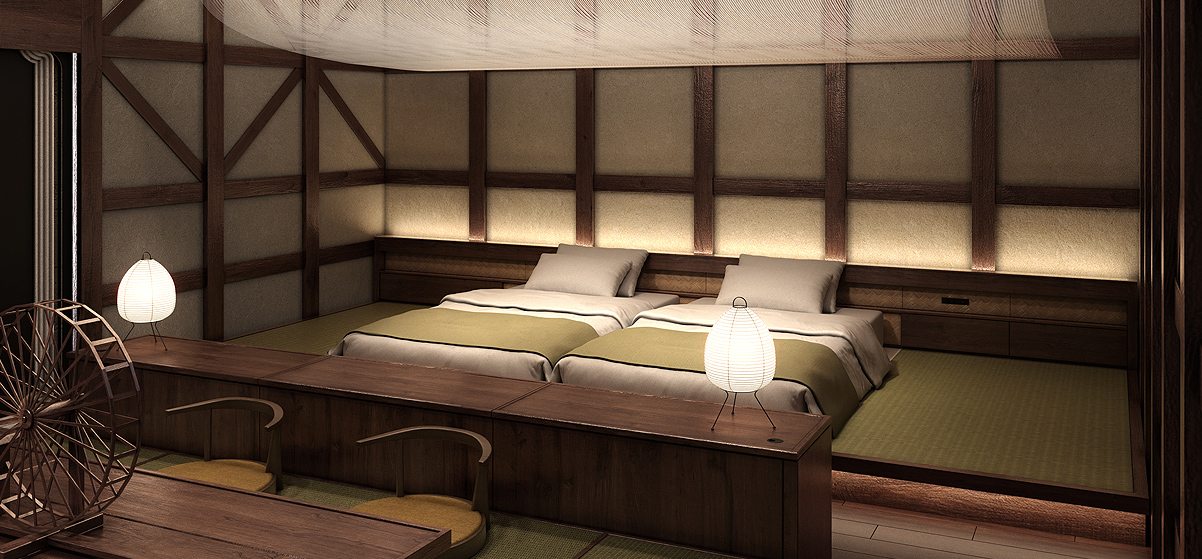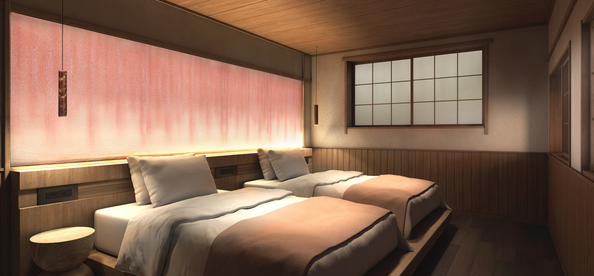 갓코(절인 저장식품)를 저장했던 창고의 역사를 소중히 간직하며 절인 저장식품과 관련된 도구 등을 공간 디자인 아이템과 모티브로 전개한 공간을 즐길 수 있습니다. 욕조도 절임통을 모티브로 만들어졌으며 봄에는 욕실에서 벚꽃을 감상할 수 있습니다.