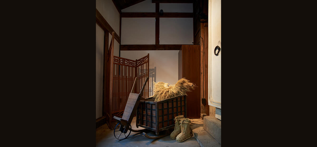 角館のもう一つの武家屋敷通りである「田町武家屋敷通り」にある「西宮家」の先祖が、高名な武士であったことやその時代に畏敬の念を抱き、蔵の空間は、武士の文化や暮らしなど往時の営みを感じることができます。また、実際に触れられる武士の道具も設え、時代を越境する感覚をお楽しみいただけます。