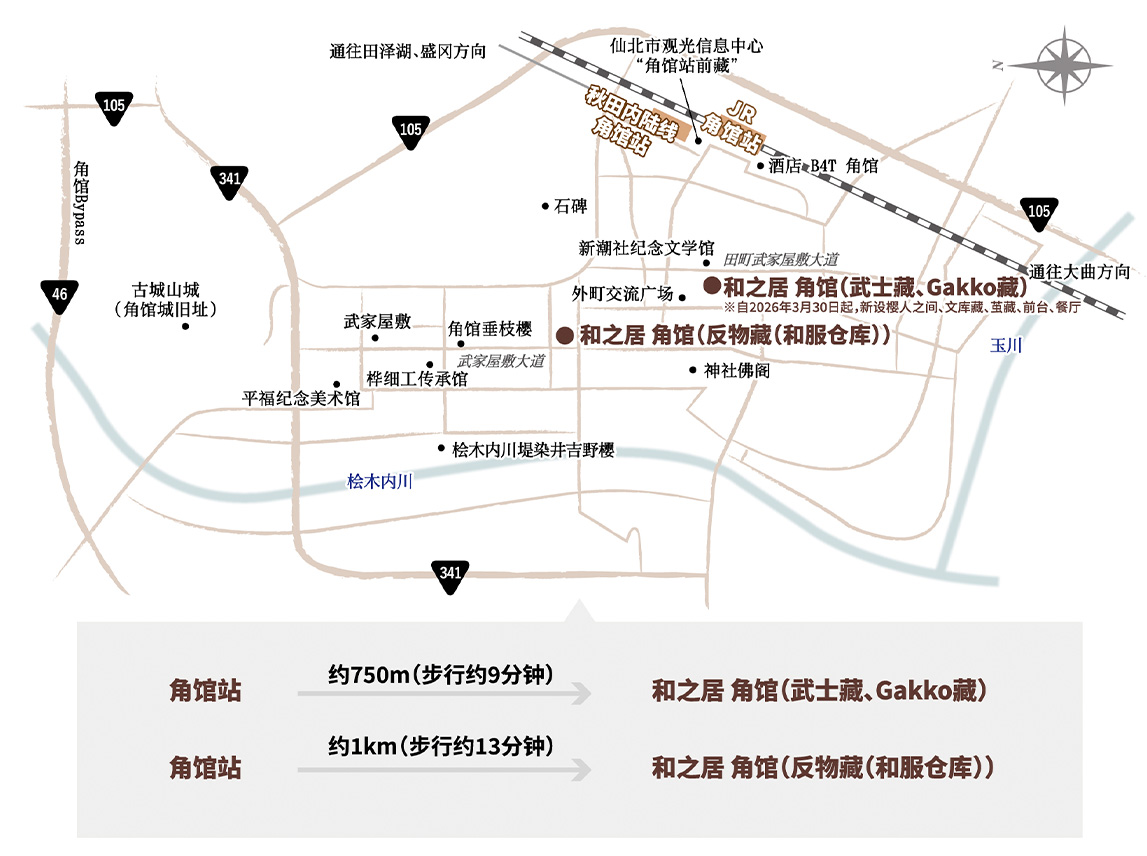 本酒店的入住手续将在各处仓库办理。工作人员将为您指引前往仓库的路线,抵达角馆后请随时联系我们。此外,如需接送服务,我们将提供从角馆站至各仓库的专车接送。