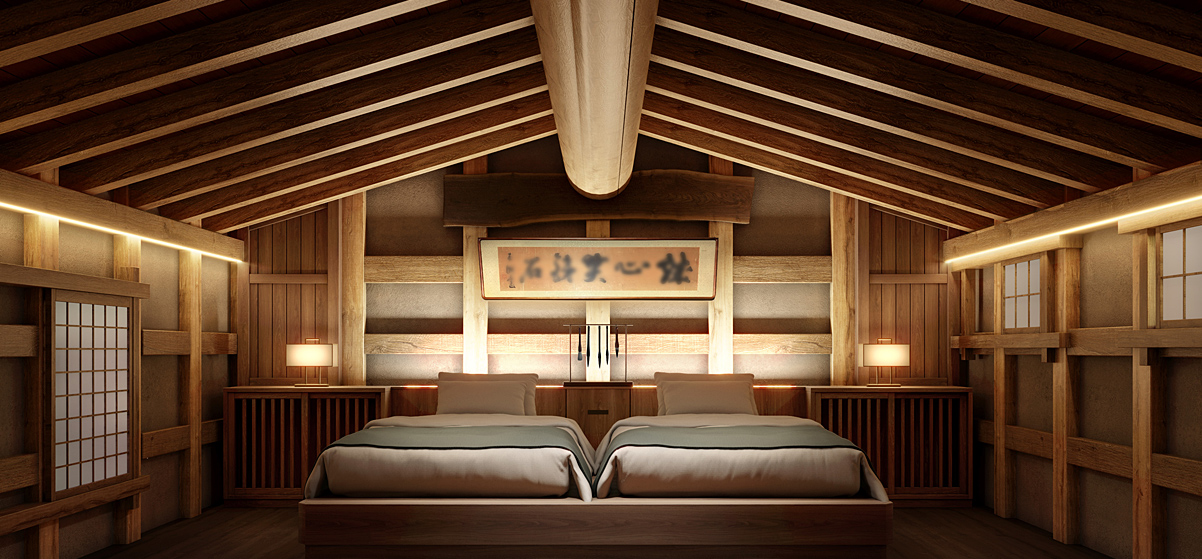 具有高高的天花板和粗大梁柱为特色的仓库,据传过去曾用于养蚕。在这间与仓库历史相呼应的空间内,以蚕茧与丝线为主题,布置了能让人感受到手工气息的家具与装饰,让您仿佛被温柔包裹在仓库中般,享受静谧悠然的时光。